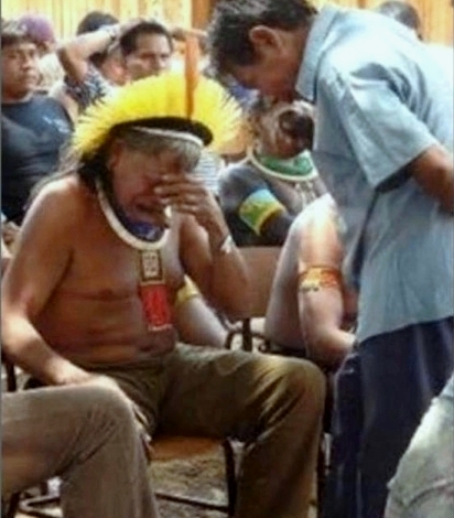 a reçu la pire nouvelle : Dilma, présidente du Brésil, a donné son approbation pour la construction d’une énorme centrale hydroélectrique (la 3ème plus grande au monde). Le barrage inondera environ 400 000 hectares de forêt. C’est la sentence de mort pour tous les peuples vivant près du fleuve. Plus de 40 000 Indiens devront trouver de nouveaux endroits où vivre. La destruction de l’habitat naturel, la déforestation et la disparition de plusieurs espèces sont des faits ! Il n’y a plus dans notre monde de place pour ceux qui vivent différemment, tout doit être aplani, et chacun, au nom de la mondialisation, doit perdre son identité et sa façon de vivre.