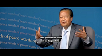 « Où allez-vous, et que faisiez-vous au Canada ? » J’ai répondu : « Je faisais un discours sur la paix. » Il a dit : « Ah, il n’y aura jamais la paix. Il y a tellement de cupidité, tellement de ceci, tellement de cela… » Je respecte vos dix raisons selon lesquelles la paix est impossible, je respecte vos vingt raisons selon lesquelles la paix est impossible, mais j’ai six milliards cinq cent millions de raisons pour qu’il y ait la paix. Alors je vous surpasse en nombre et en quantité.