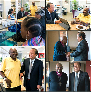 Prem Rawat réunion avec l’archevêque Desmond Tutu pour discuter de développement de la paix en post apartheid en Afrique du Sud – Johannesburg , Afrique du Sud 2014.