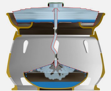 Cette chaudière est étanche à l’eau et grâce au soleil (chaleur) l’eau s’évapore tout au long de la journée.