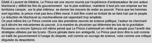 Pourtant relire l’œuvre de machiavel dans le contexte politique, troublé, de cette fin de millénaire…, prend une résonance singulière. Car cette mise à nu, crue et limpide, des mécanismes du pouvoir, reste encore très actuelle ! :