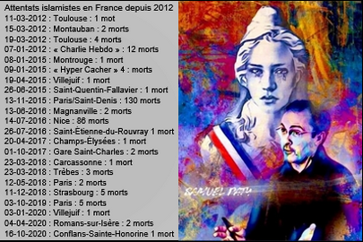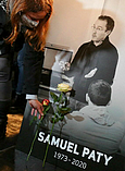 En Hommage, après l’assassinat par décapitation de Samuel Paty, professeur d’Histoire, par un terroriste islamiste pour avoir montré à ses élèves des caricatures de Charlie Hebdo dans le cadre d’un cours sur la liberté d’expression.