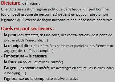 Grâce à la stratégie de la peur et grâce au confinement, personne n’est à même de réagir et de manifester contre ces décisions infâmes dignes d’un traître