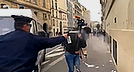 Vif échange entre un manifestant contre le Couvre Feu et un policier.