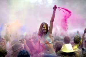 Le festival de Holi est une fête de couleurs qui se déroule le jour de la pleine lune du début de printemps, dans différentes région de l’Inde, en particulier à Mathura (la région de naissance de Krishna), le Népal, le Bangladesh, le Pakistan, la Malaisie, la Guyane, l’Afrique du Sud, la République de Trinité-et-Tobago, le Royaume-Uni, les États-Unis, l’île Maurice, la République des Fidji, l’Allemagne, etc. Elle commémore la