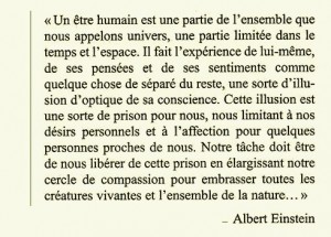 « Quand je proposais la théorie de la relativité, très peu de moi ont compris ce que je vais révéler maintenant de transmettre à l’humanité entrera en collision avec l’incompréhension et les préjugés dans le monde.